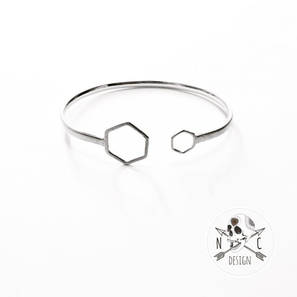 Hex skull bangle made in silver. With two hand forged hexagons either end. Adjustable but if a particularly small or large version is required please contact us after purchase.