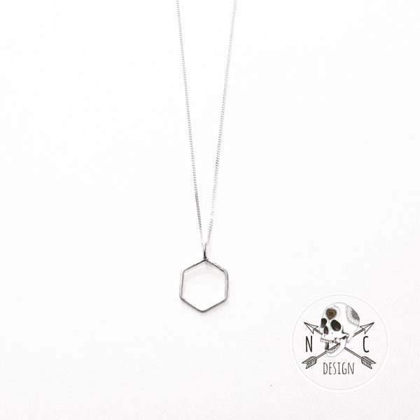 Elegantly simple silver hexagon necklace. Part of the Hex collection. There are also matching rings, earrings and bangle available.